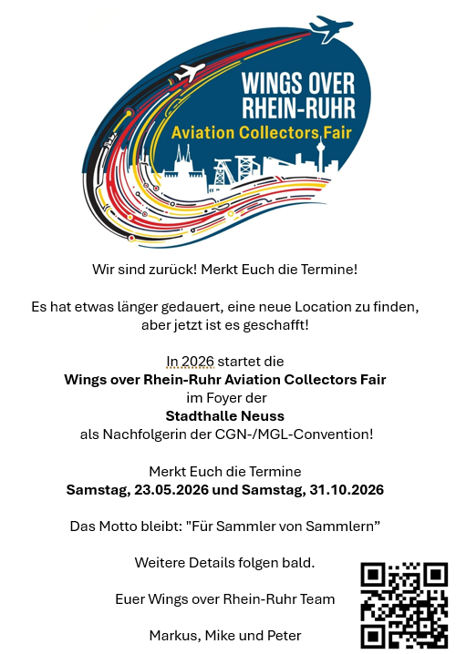 I wish the event every success! It’s great that there is once again a meeting place for model aircraft collectors in North Rhine-Westphalia! Especially as the MGL/CGN convention is still on hold 😉