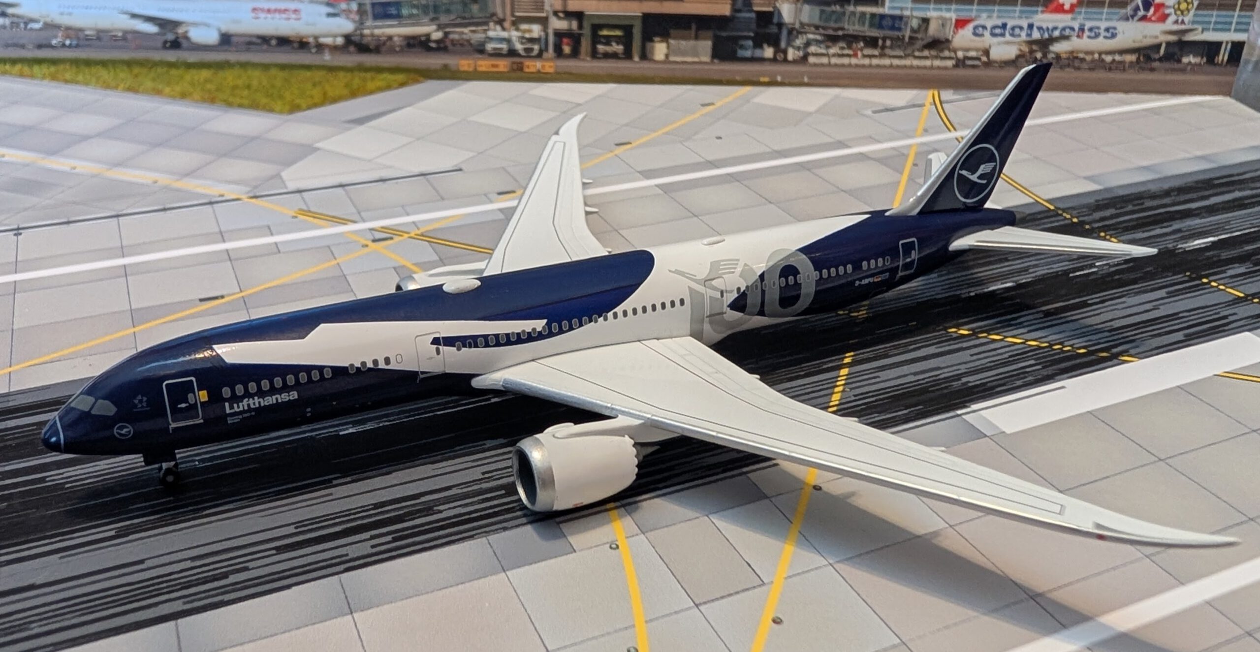 The first indication that Herpa will be producing the Lufthansa 787-9 D-ABPU in a special livery to mark the airline’s 100th anniversary can be found on Herpa’s Facebook page: