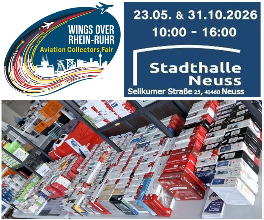 The first Wings over Rhein-Ruhr Aviation Collectors Fair will take place on Saturday, May 23, 2026, at the Stadthalle Neuss.